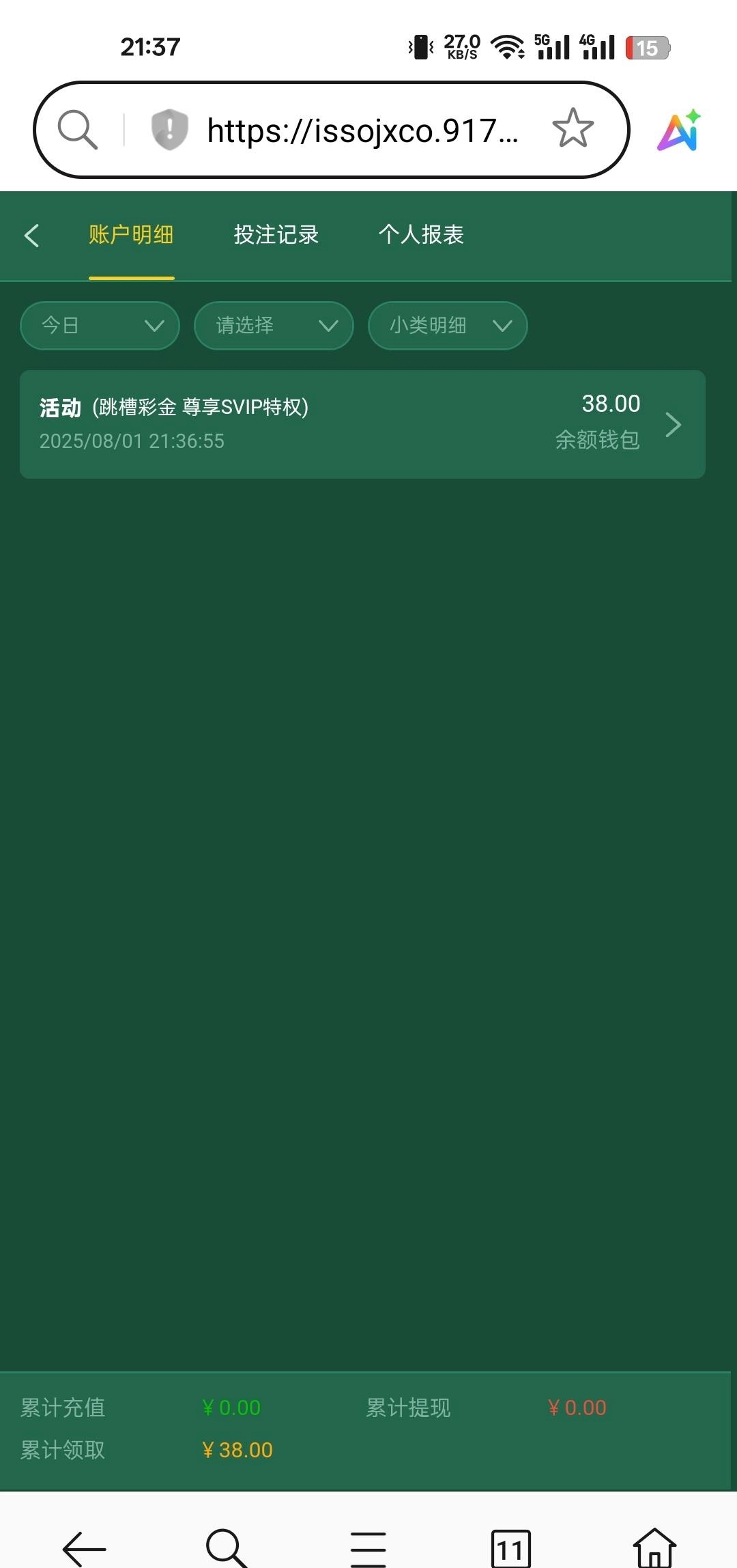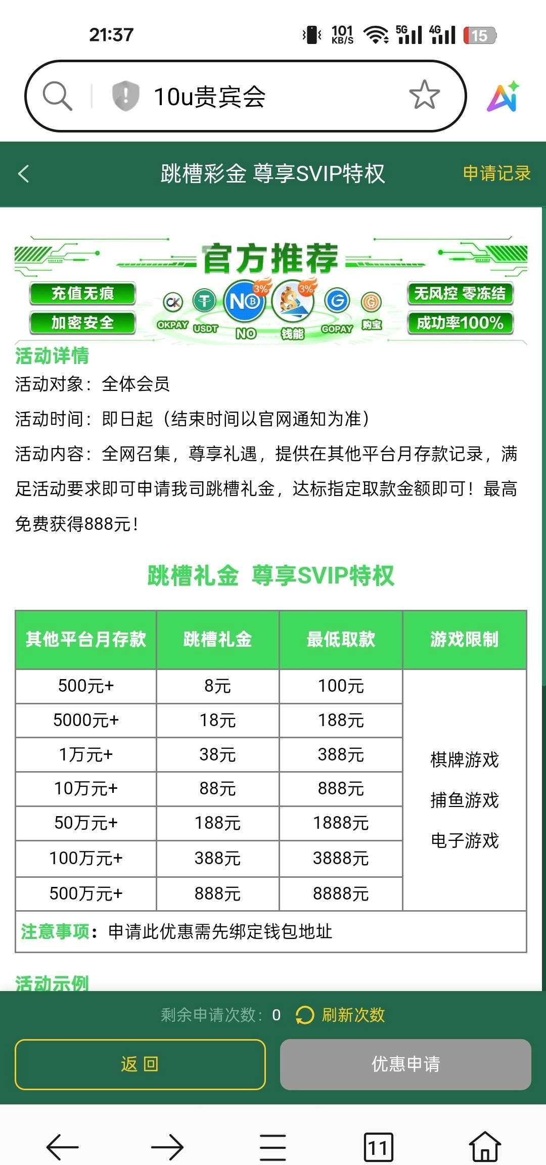 新用户注册申请跳槽金,提供有充值记录的平台领取,我是上个月的充值记录,领到了38,半小时左右审核