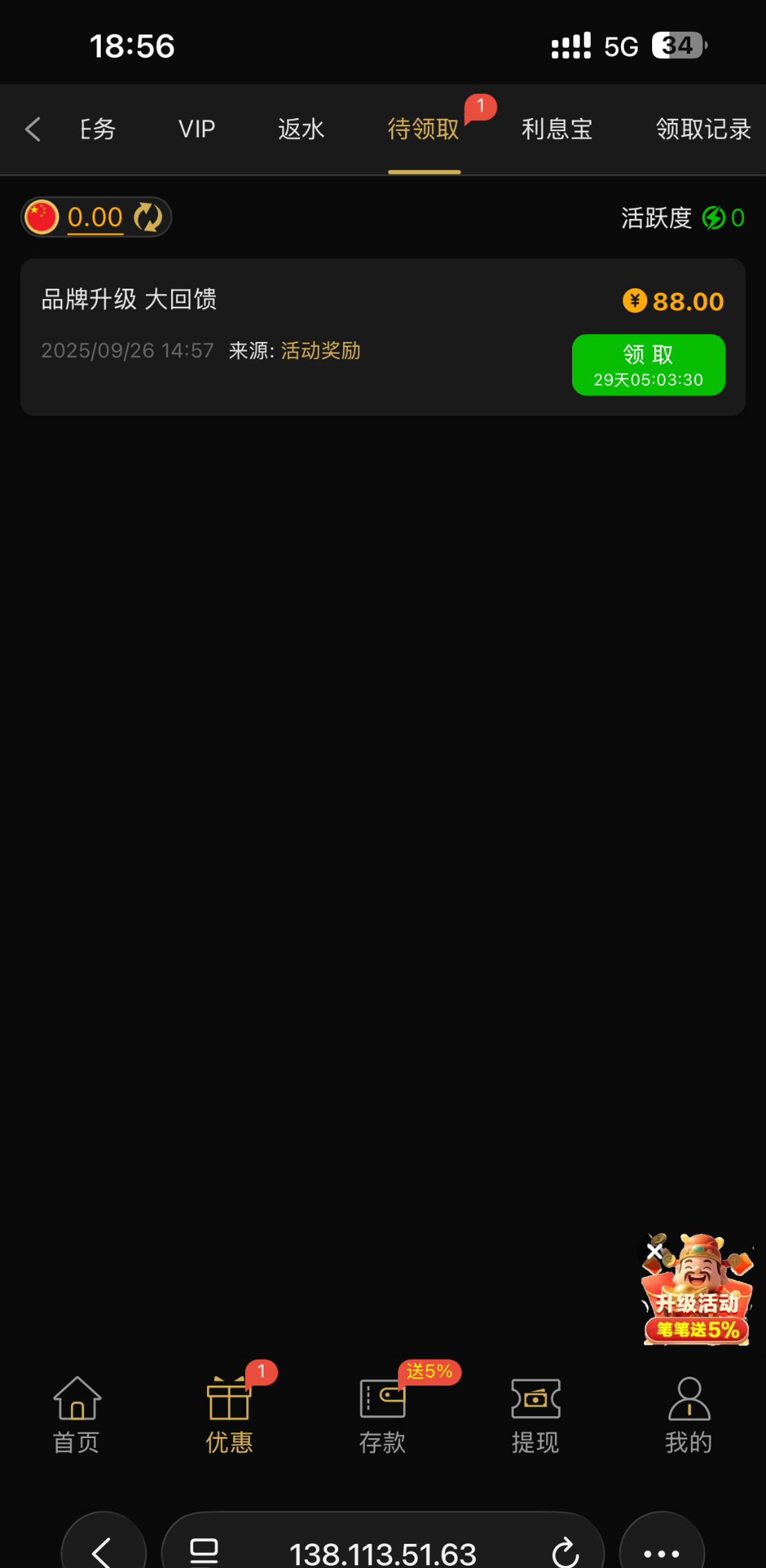 这个平台我都玩了几年了,才vip15级,很久没玩了,是刚才看到你发的可以领88我才登上去