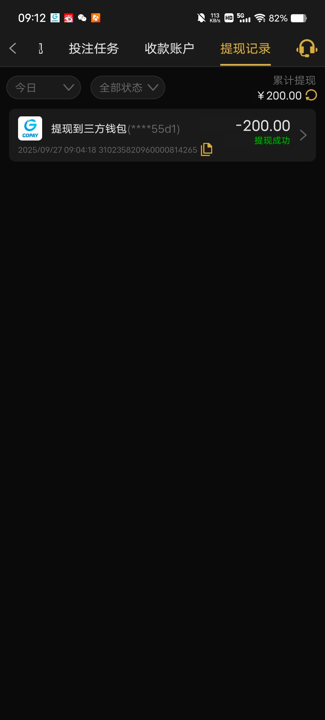 刚出200到账了