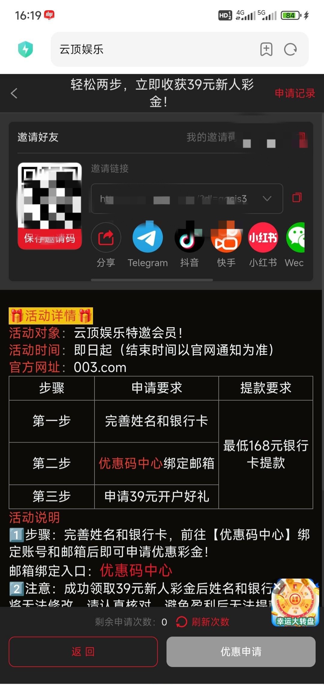 自助申请39,应该是特邀可以去看一下