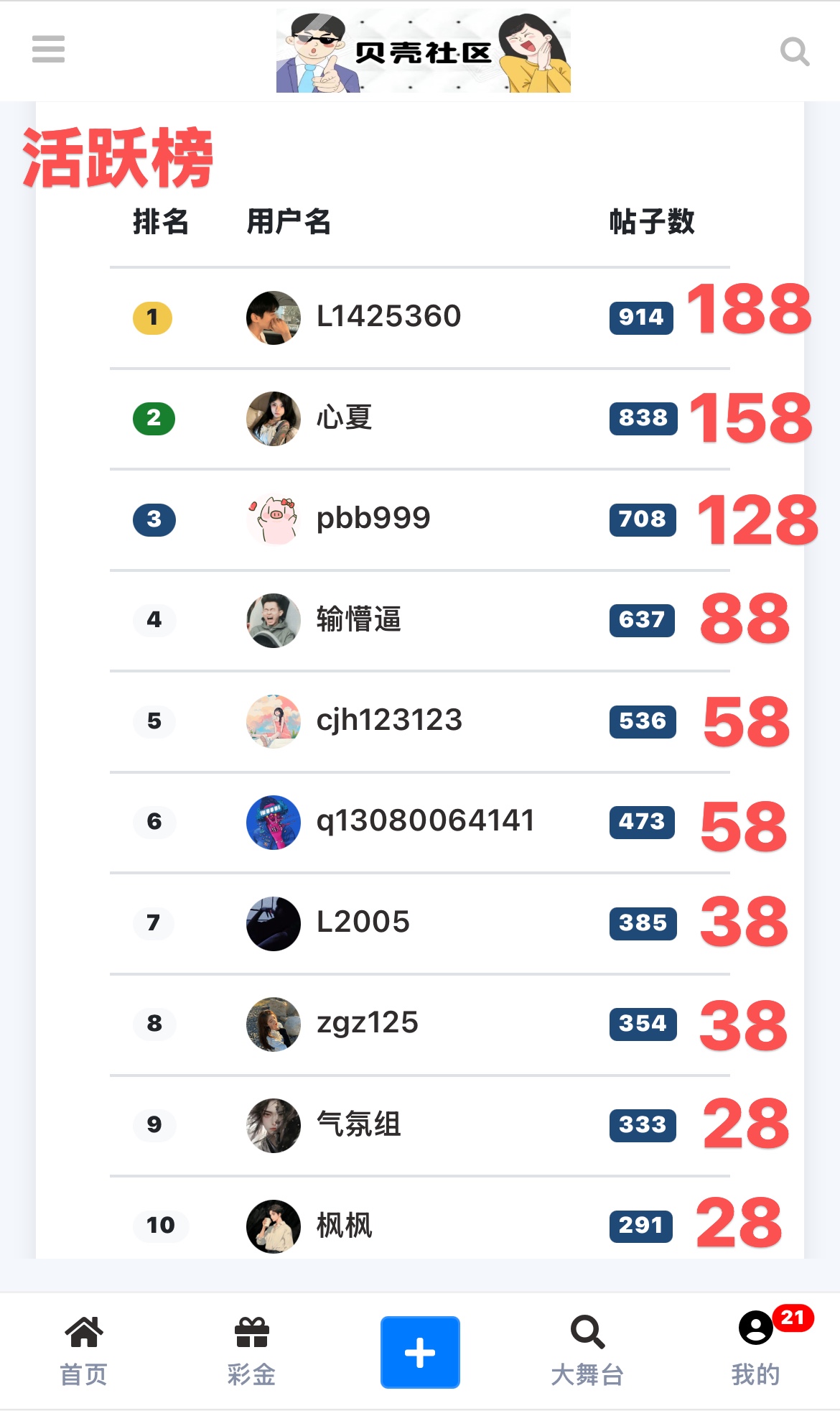 对当月发帖和活跃用户进行嘉奖