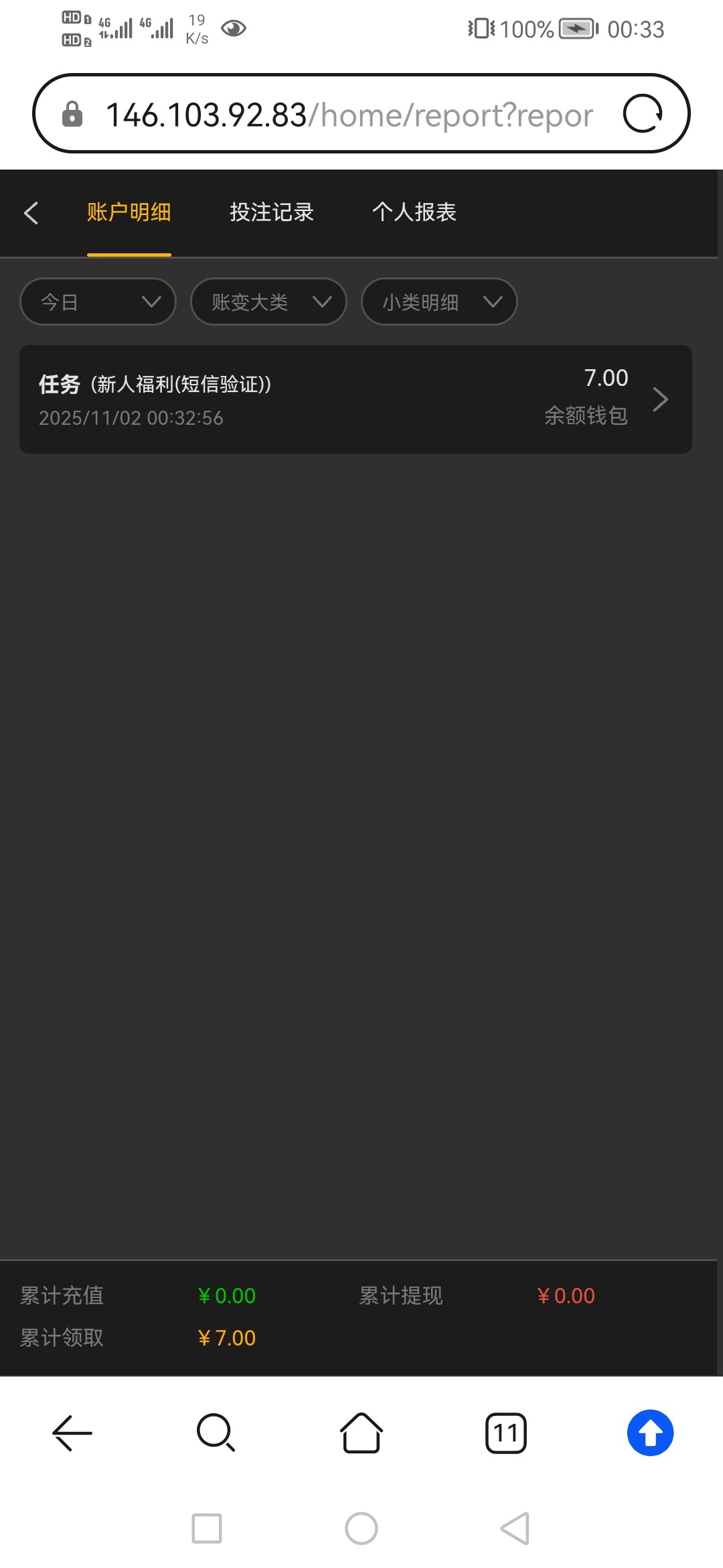 7块钱磨了一千多流水才上够一百也是赌神附体了